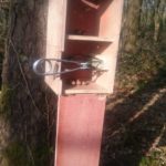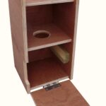 The Fineren Squirrel Box fulfills the two essential requirements for use with bodygrip traps; they support the trap to hold it in the correct position and also exclude any non target animals from the trapping area. Access to the trap is through a double, offset baffle which means that a squirrel has to get right inside the trap before triggers the trap. Most birds don’t like going down into holes and usually won’t go further than the top chamber if they enter at all.