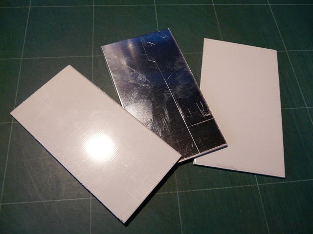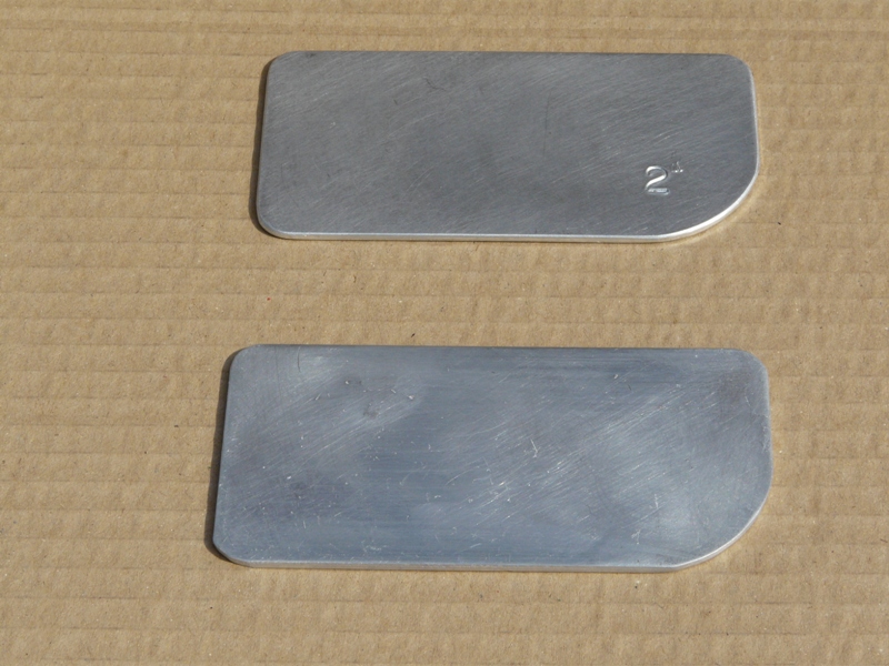 A set of three aluminium blanks for use as net making gauges  – 2″, 2 1/8″, 2 1/4″.
